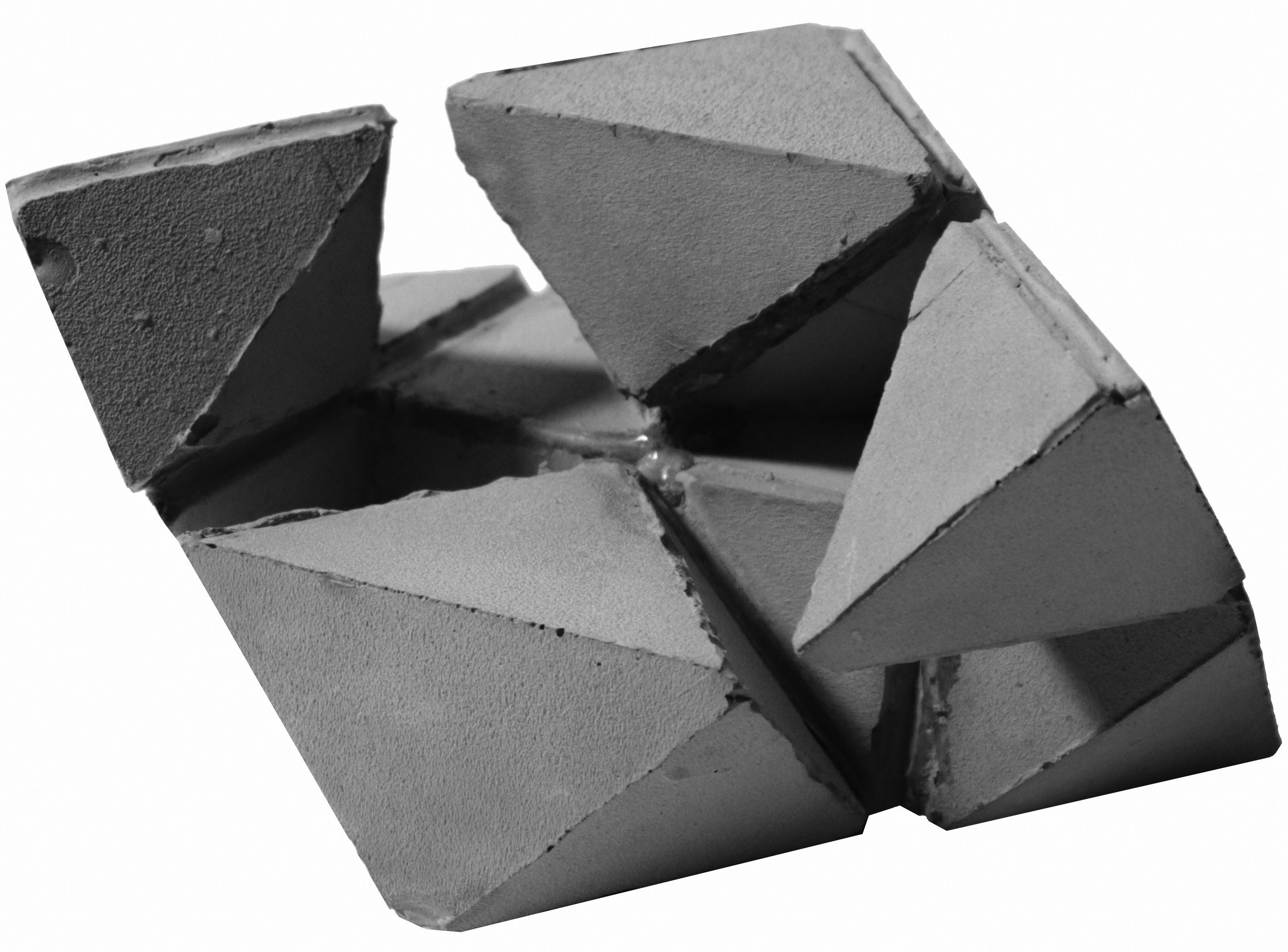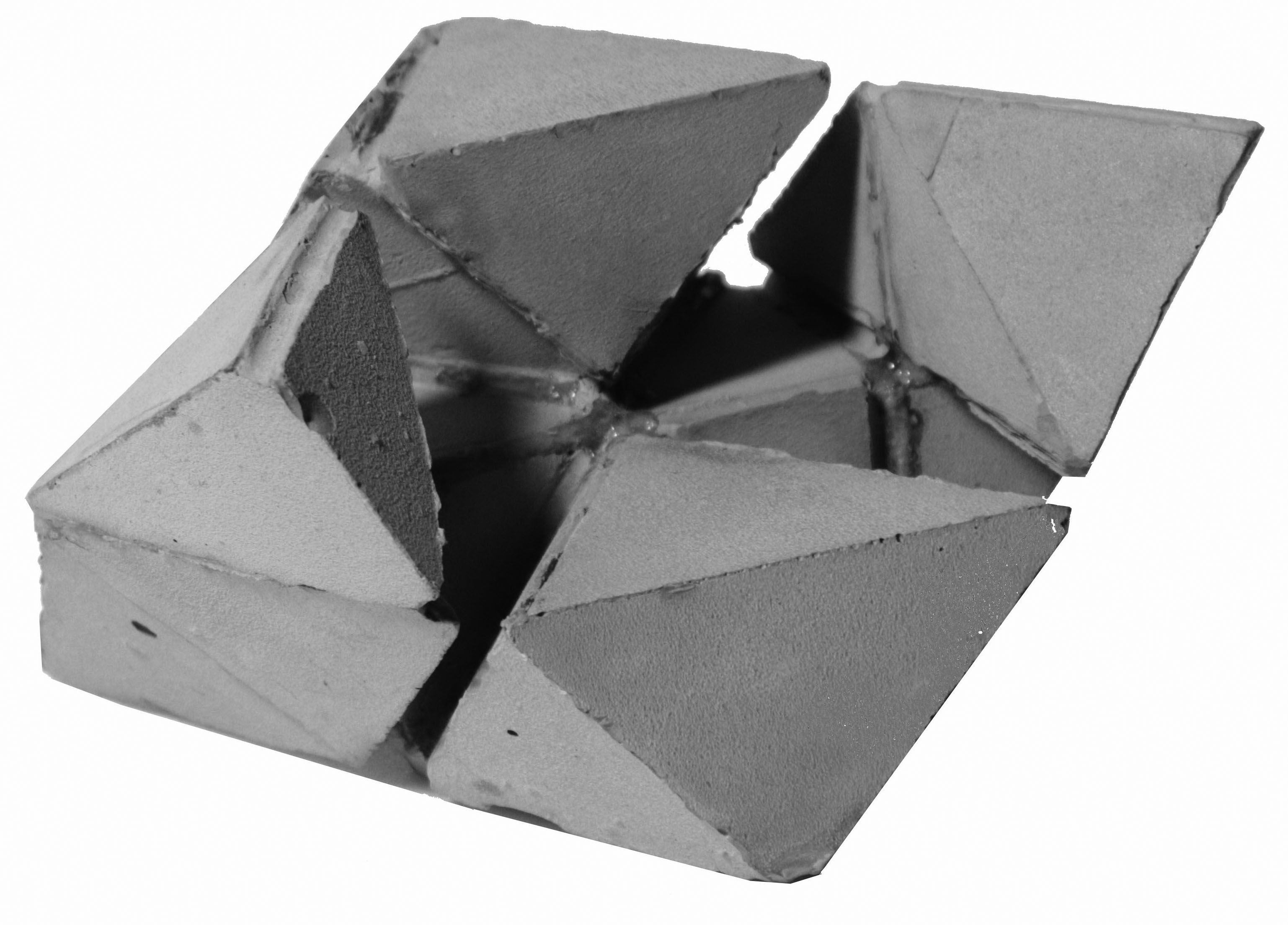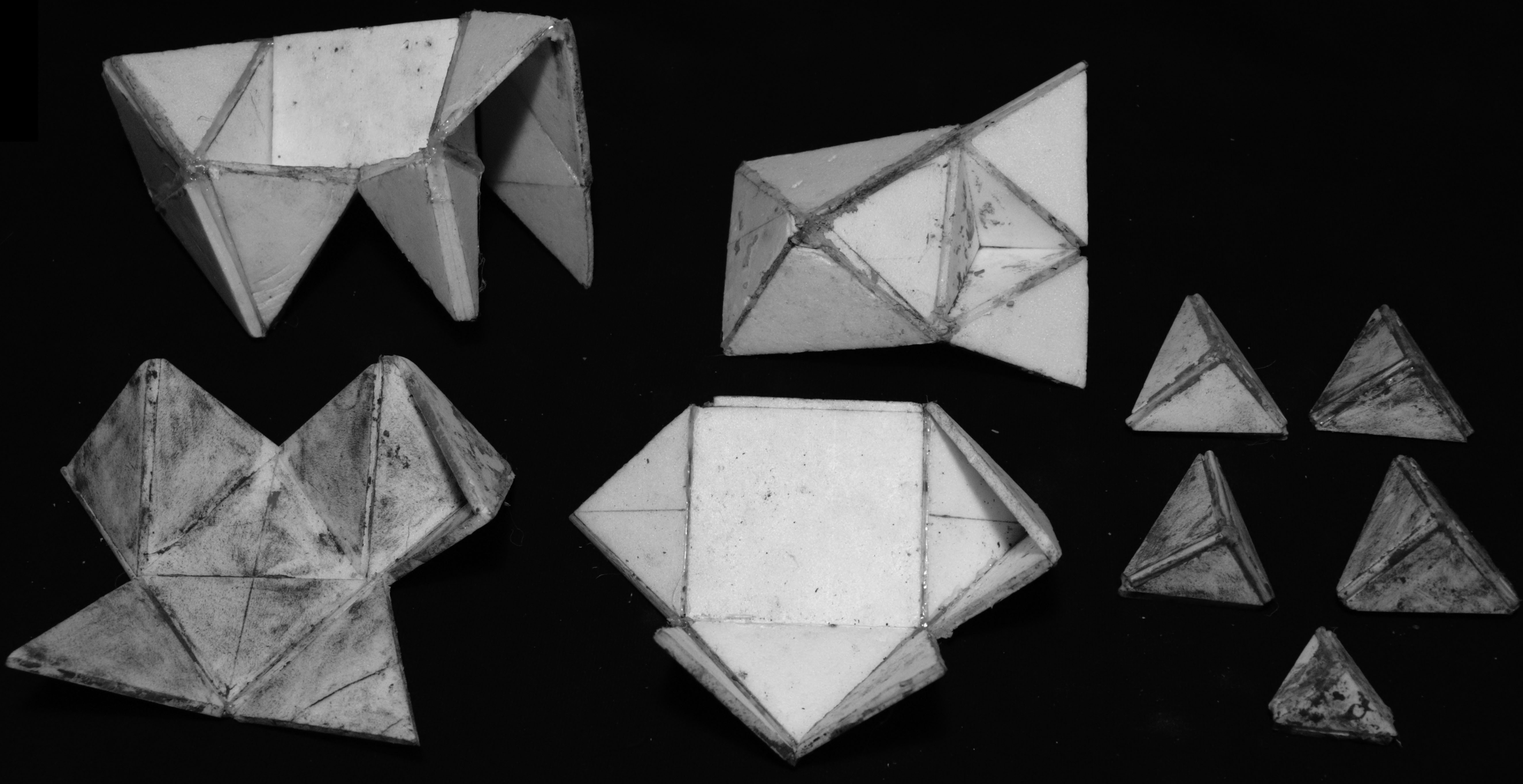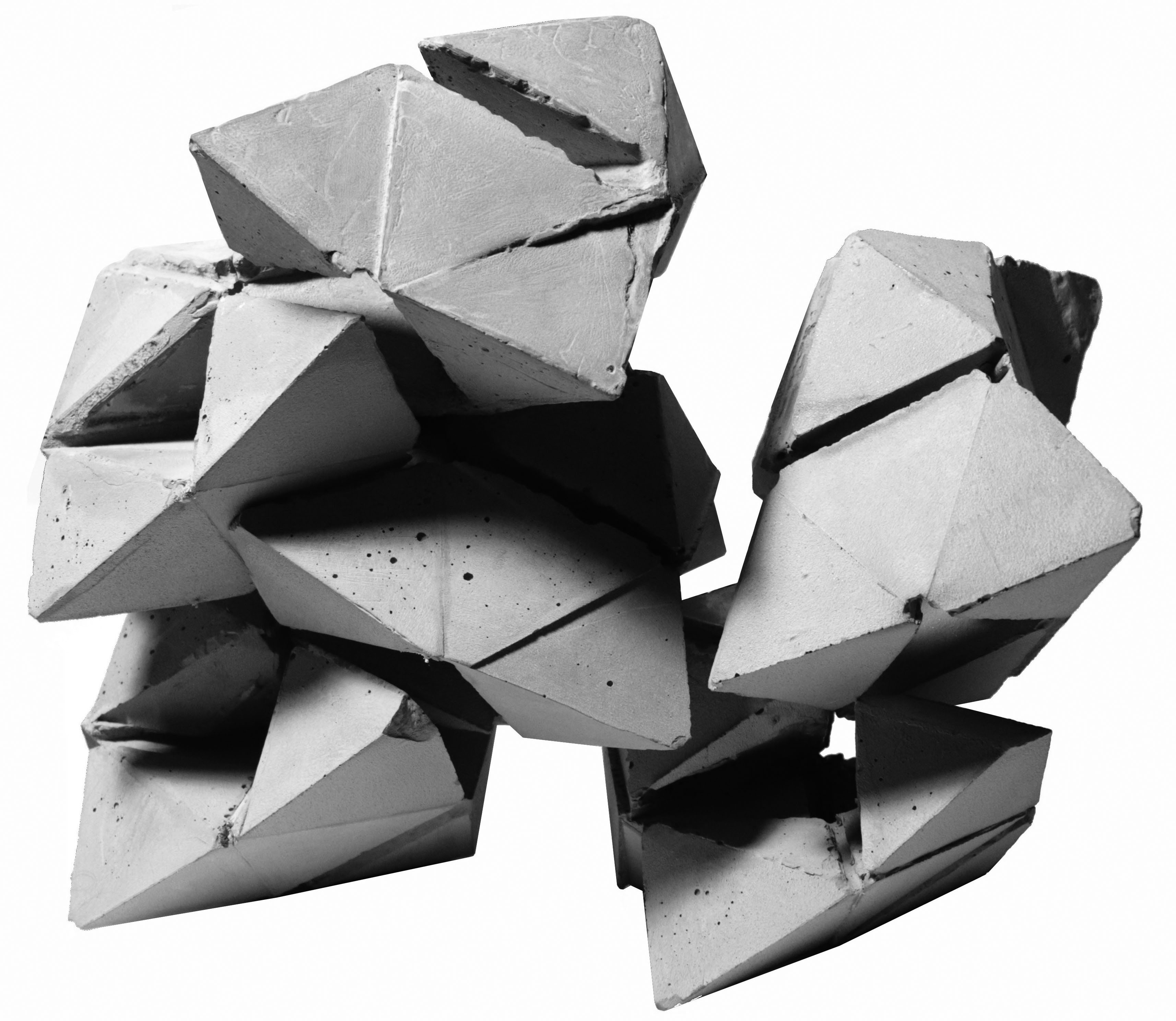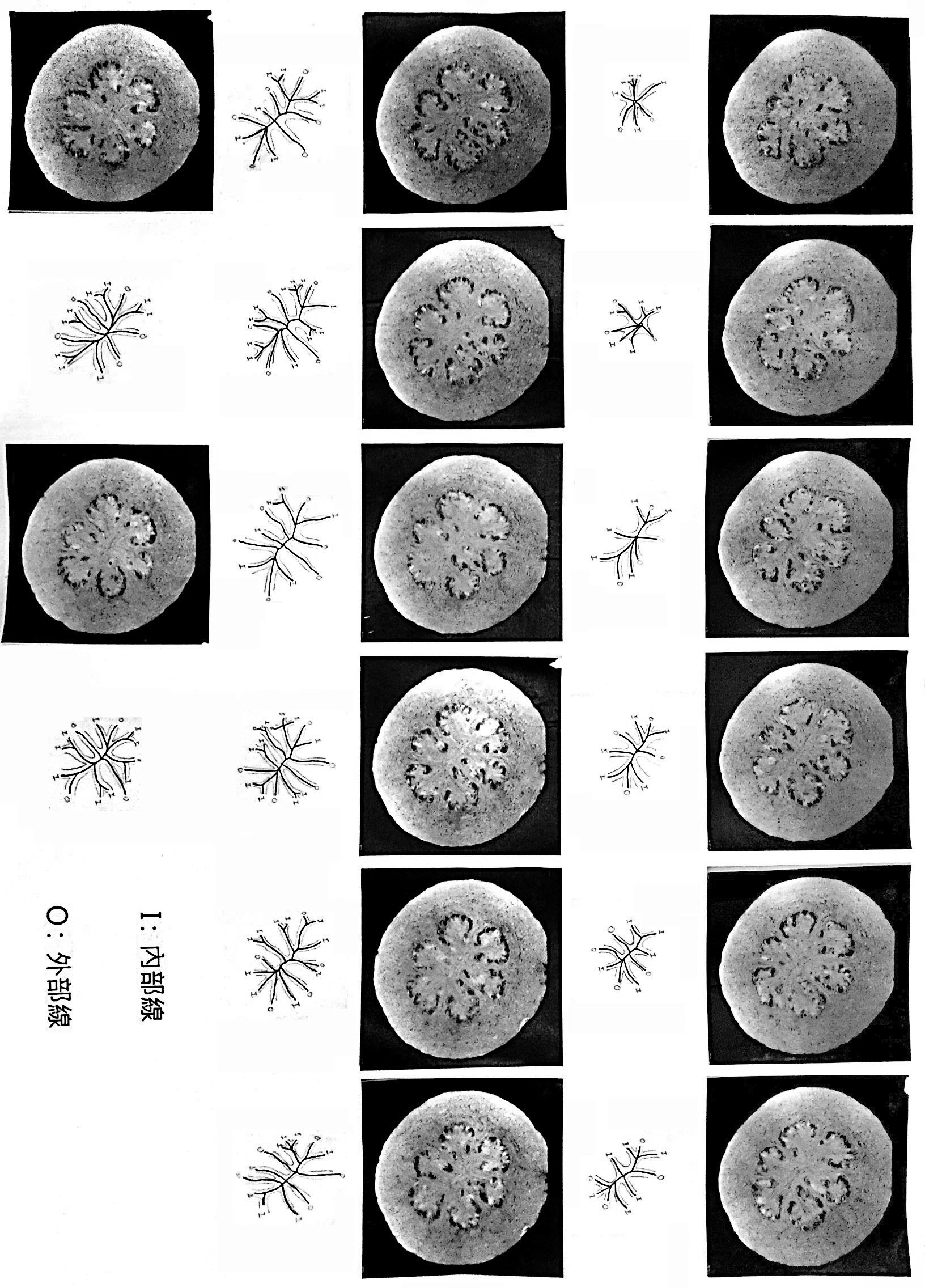 先觀察芭樂籽的剖面再簡化、疊合形狀,再從中找出重複的樣式,以這個樣式作延伸。之後再分析觀察芭樂籽的生長過程找出規則,並從先前的樣式以這些規則做發展,創造出必然的架構,最後以隨機貼補這個新的架構做成偶然的模具,灌注出單元。