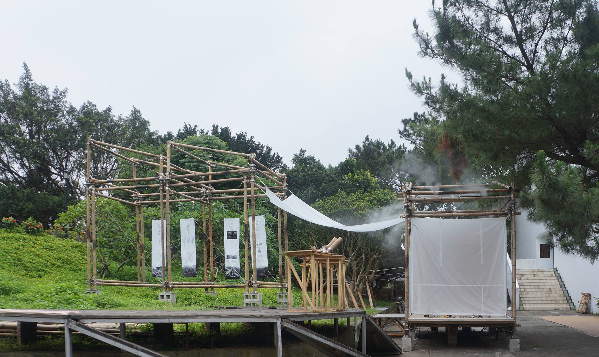 這個設計以開發竹構的連接細部為方法,讓易於取得的竹子能在簡易工法下快速組裝。同時單元跟單元間也可以透過簡單的帆布構造創造出更多的空間,而就本身的模具也能做多種的組合,垂直向上或水平發展皆可。