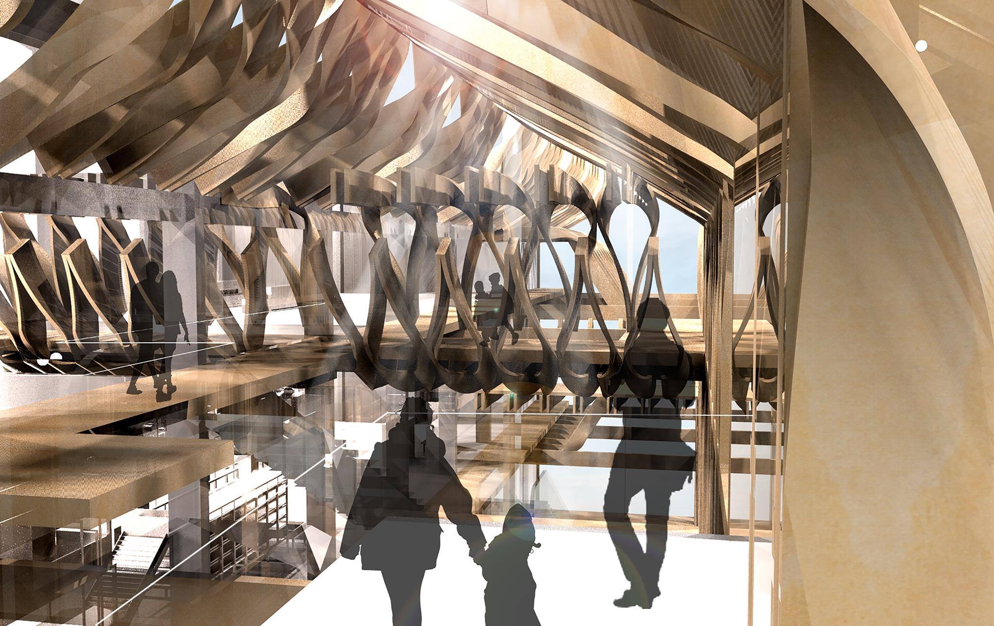 思考肉鬆與建築的可能性,從生產方式著手研究,透過工廠裡對於肉品的加工,發現用同一個原料:豬的後腿肉,可以被切分成不同的肌理,這些部位會依據特性, 分別被做成不同特質的產品,不同的師傅、不同的處理方式,會生產出不同的結果,也就是所謂的火候,而在不斷的分解與組合之中產生出最美味的食物;建築物質 的構成,有沒有可能像製作肉鬆一樣,在物質的裂解與重組之間,保持物質紋理的層次,微調光與物質縫隙所形成的平衡與疊加入味,去帶給人的感官上一種具有層 次性的空間感知?